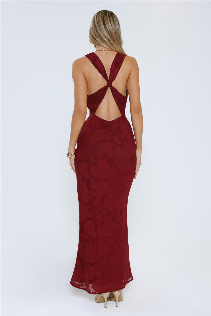 Turn heads in the Lasting Luxuries Maxi Dress. Featuring a soft cowl neck, flowy skirt, textured print, and an open back, this maxi dress blends elegance with a touch of flirty sophistication. Perfect for special occasions or dreamy evening events. Style it with strappy heels and statement earrings for night-out glam.
