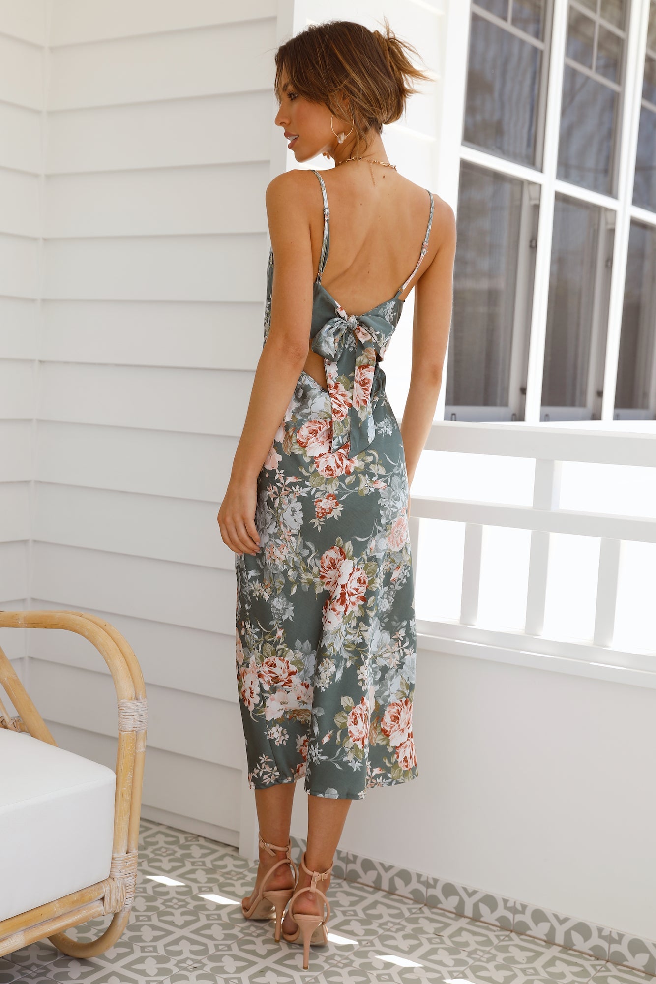 • Sage floral dress.