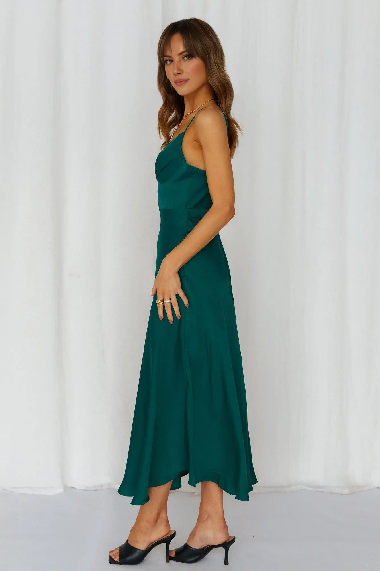 It's time to dress up and become the top influencer for the night! The No Missing Kisses Midi will make you own the spotlight wherever you go. A beautiful, luxe silk slip dress with a v-neck bust cut. Add some black heels and big bouncy curls, because extra is all you know tonight.