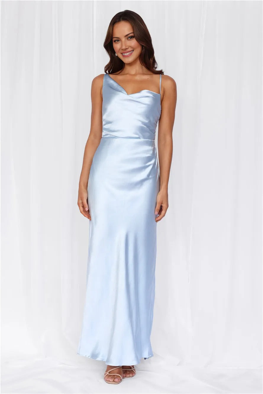 Embrace asymmetrical allure with a captivating cowl neckline that drapes gracefully, adding a touch of modern sophistication to the look. Adjustable shoulder straps ensure a perfect fit, while subtle gathered details to the sides of the top add delicate texture and dimension.